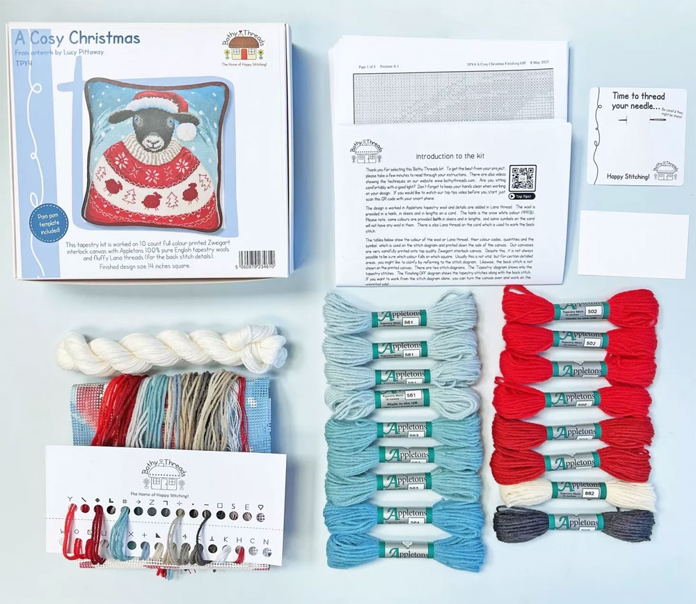 В состав набора входят: шерстяные нитки, страмин 10 с полноцветным рисунком, игла, схема, инструкция.