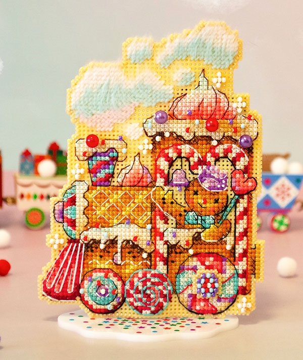 В состав набора входят: хлопковое мулине ПНК им. Кирова 20 цветов, пластиковая канва сливочного цвета, бисер, подставка, бусины, декоративные(пушистые) нити, игла, схема, инструкция.