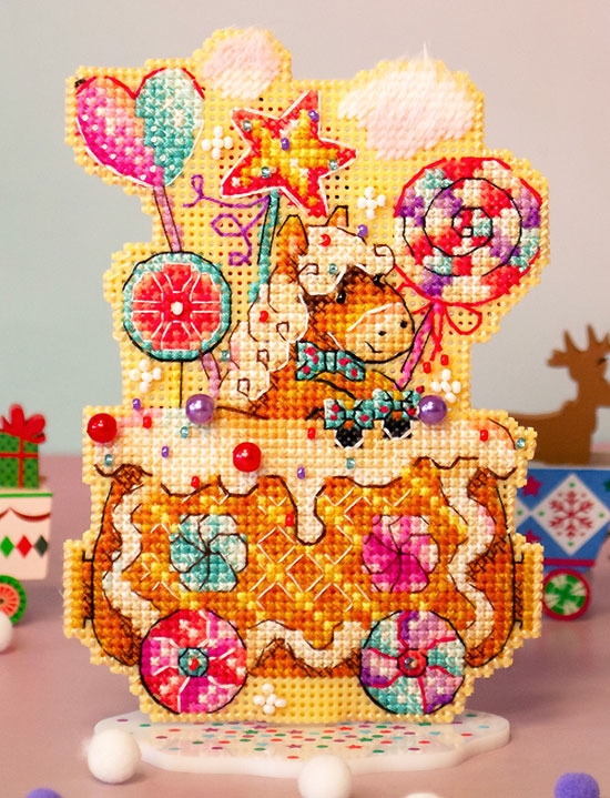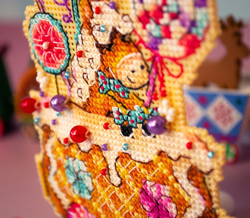 В состав набора входят: хлопковое мулине ПНК им. Кирова 20 цветов, пластиковая канва сливочного цвета, бисер, подставка, бусины, декоративные(пушистые) нити, игла, схема, инструкция.