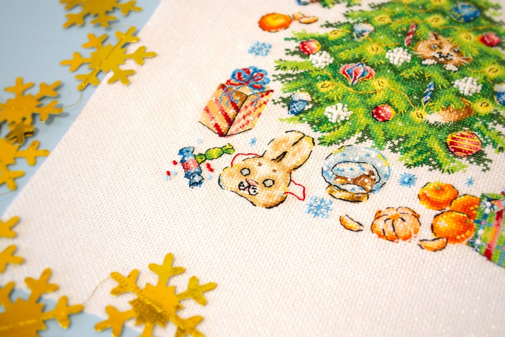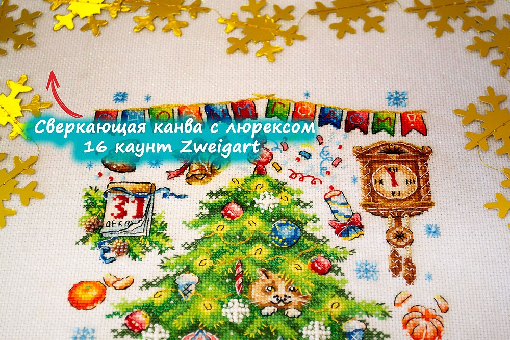 В состав набора входят: нити Royal 28 цветов, аида 16 белого цвета с перламутром, бисер, металлизированные сверкающие нити, игла, схема, инструкция.