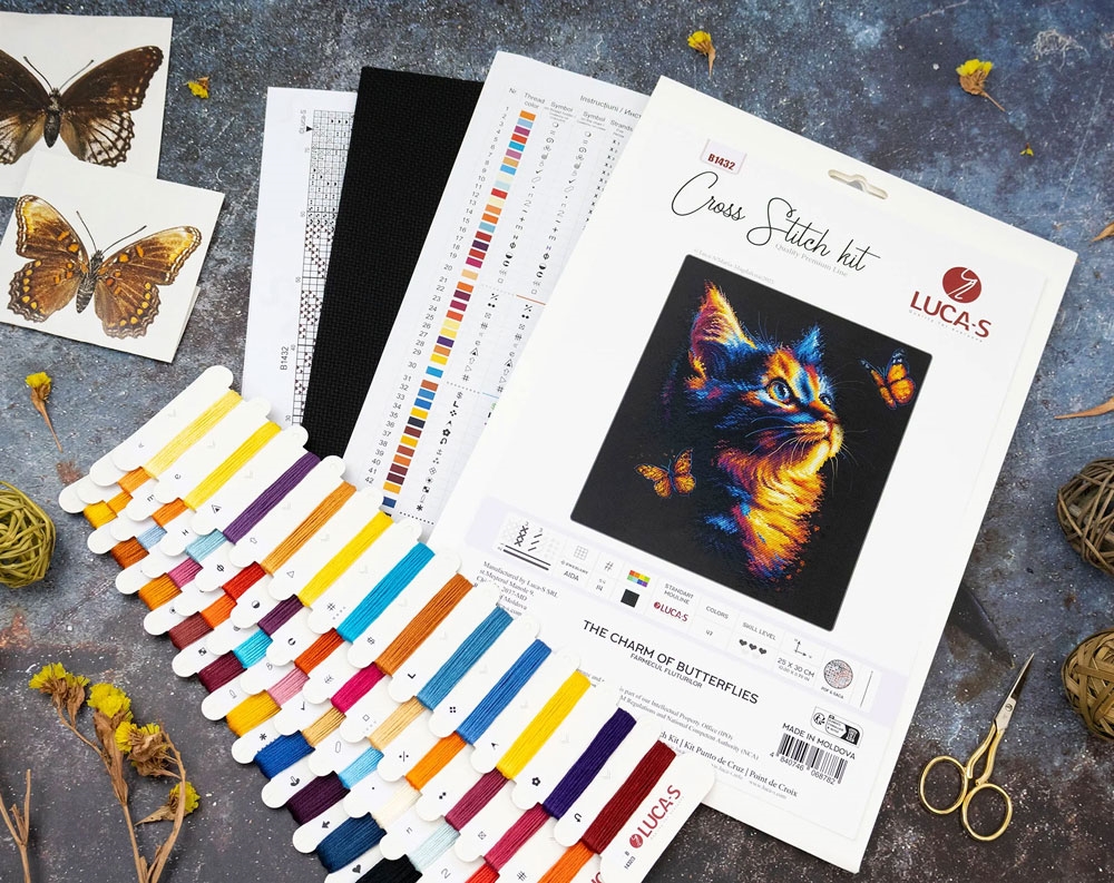 В состав набора входят: хлопковое мулине Luca-S 47 цветов, аида 14 Zweigart черного цвета, игла, схема, инструкция.