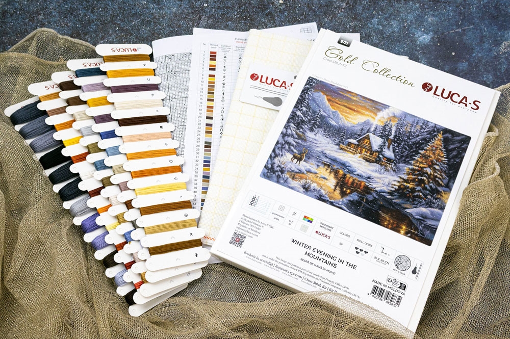 В состав набора входят: хлопковое мулине Luca-S 59 цветов, аида 16 Zweigart белого цвета (разлинованная), игла, схема, инструкция.