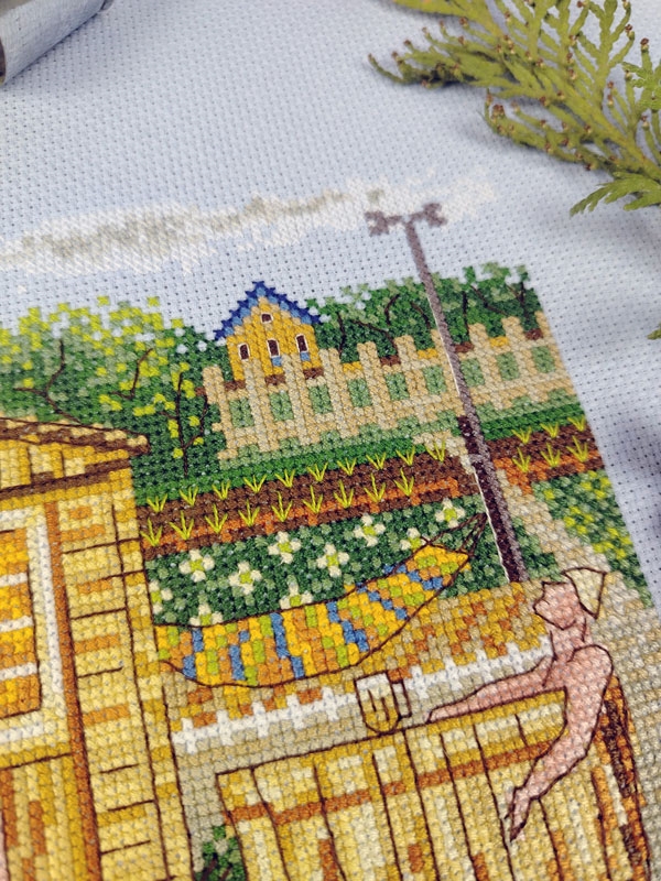 В состав набора входят: хлопковое мулине Finca 25 цветов, аида 14 Zweigart голубого цвета, игла, схема, инструкция.