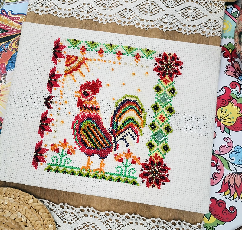 В состав набора входят: хлопковое мулине Finca 8 цветов, аида 14 Zweigart светло-бежевого цвета, бисер, декоративные элементы, игла, схема, инструкция.