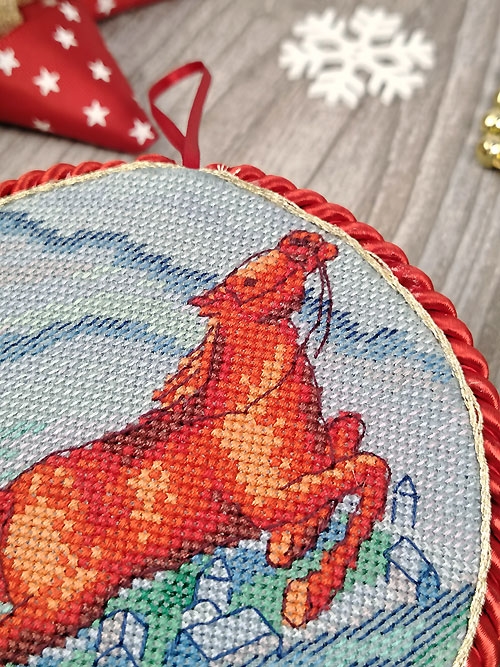 В состав набора входят: хлопковое мулине Finca 18 цветов, аида 16 Permin серого цвета, шнур, тесьма, игла, схема, инструкция.