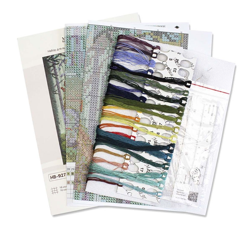 В состав набора входят: хлопковое мулине Gamma 32 цветов, аида 16 белого цвета, игла, схема, инструкция.